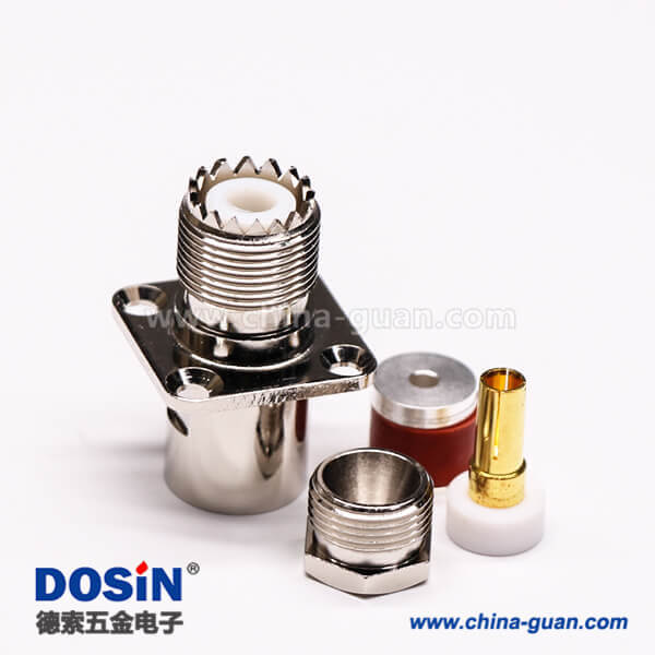 uhf接頭母頭四孔法蘭螺母鎖緊式板端連接器