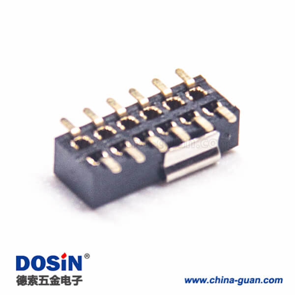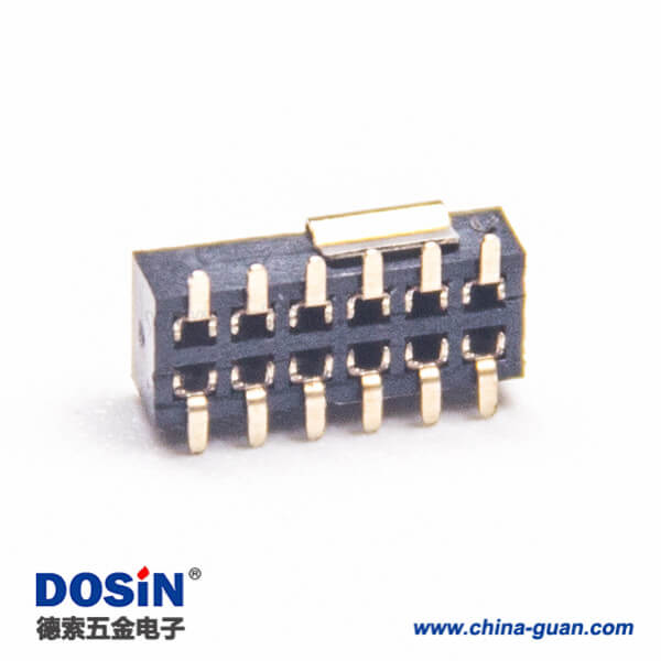 標(biāo)簽:排母連接器,母頭,直式,180度,12Pin,1.27mm,雙排,貼板,焊接,鍍金,黑色,H2.1mm,方形