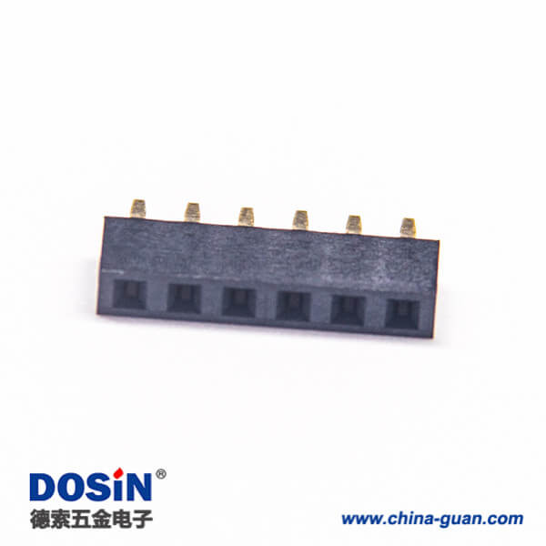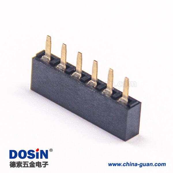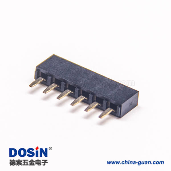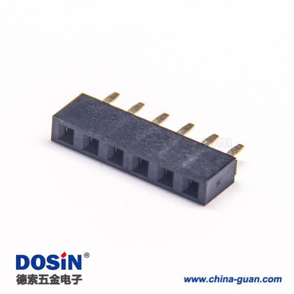 標簽:排母連接器,母頭,直式,180度,6Pin,2.54mm,單排,插板,焊接,鍍金,黑色,H5.0mm,方形
