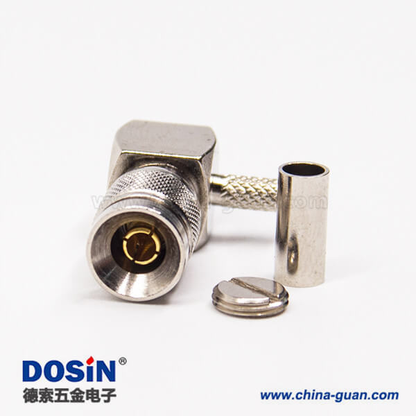 din型連接器1.0/2.3 彎式90度公頭壓接式接同軸線纜
