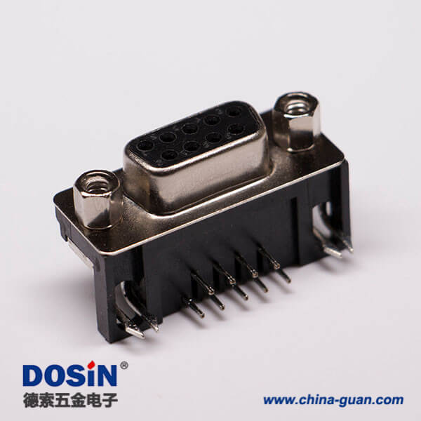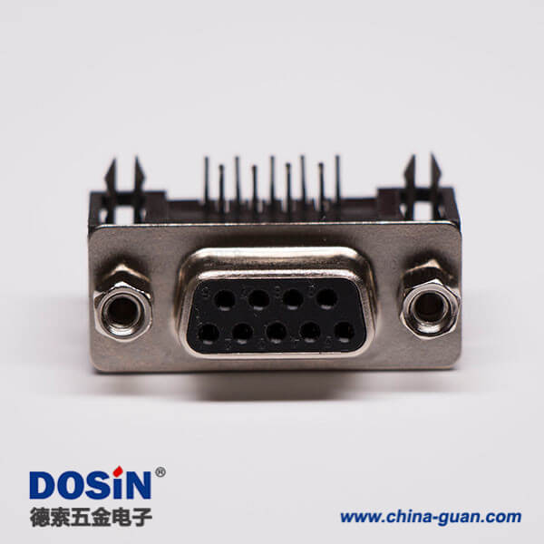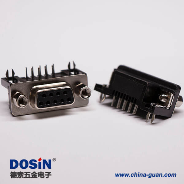 料號:DOSIN-868-0104 標簽:D-sub,標準型,9 Pin,彎式,母頭,黑膠,穿孔,接PCB板