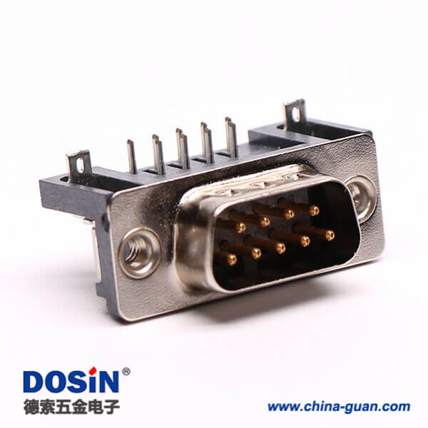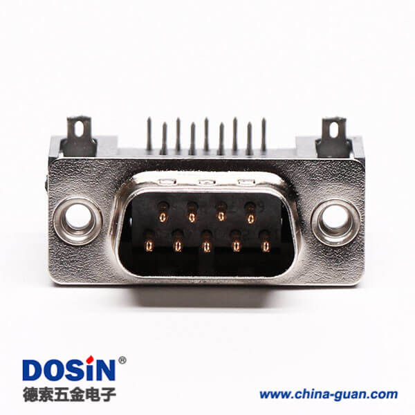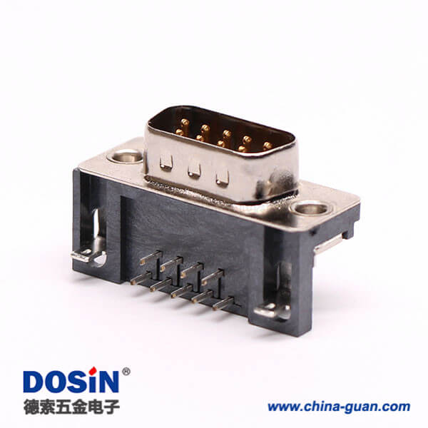 料號:DOSIN-868-0110 標簽:D-sub,標準型,9 Pin,彎式,公頭,黑膠,穿孔,接PCB板