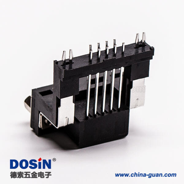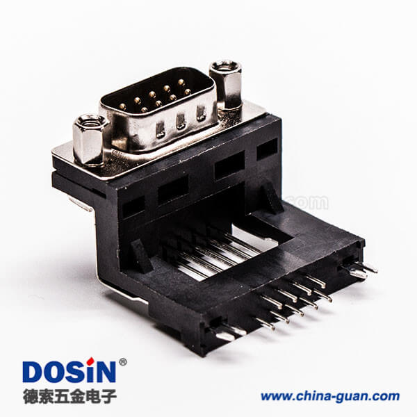 料號:DOSIN-868-0115 標簽:D-sub,高架,9 Pin,彎式,公頭,黑膠,穿孔,接PCB板