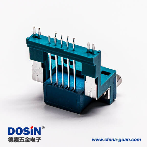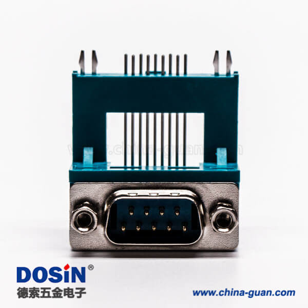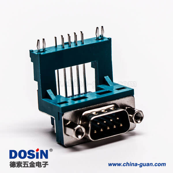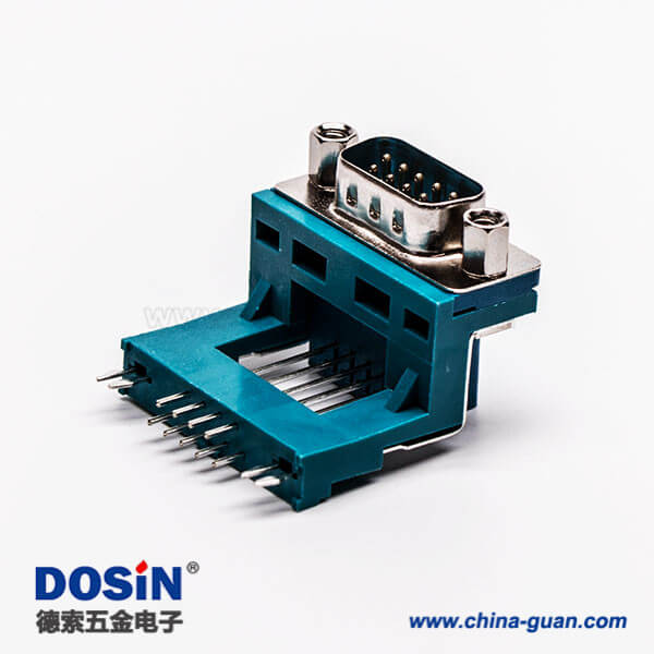 料號:DOSIN-868-0116 標簽:D-sub,高架,9 Pin,彎式,公頭,綠膠,穿孔,接PCB板