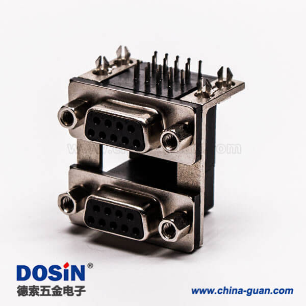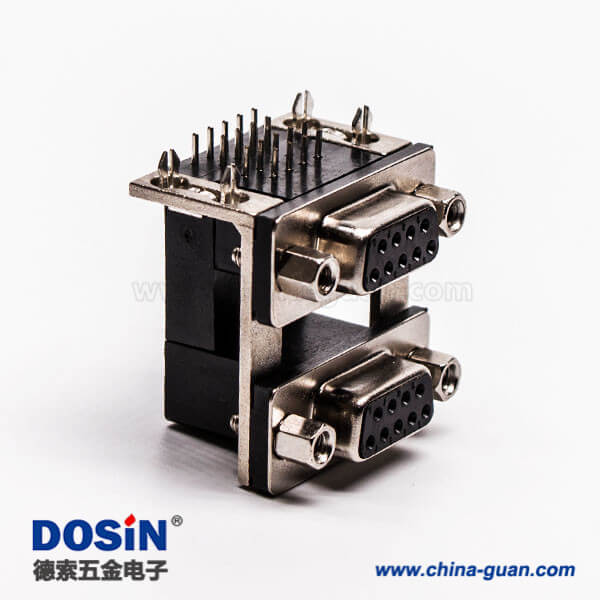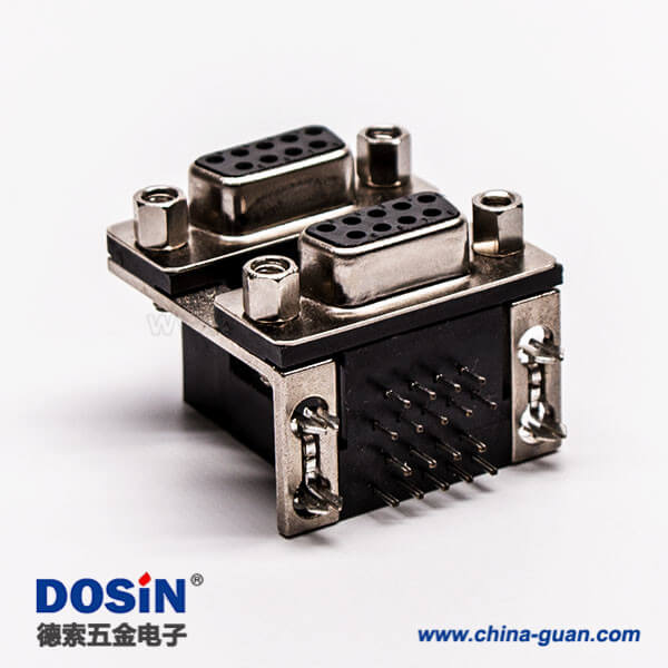 雙層d sub連接器9針母對母鉚鎖黑膠接PCB板