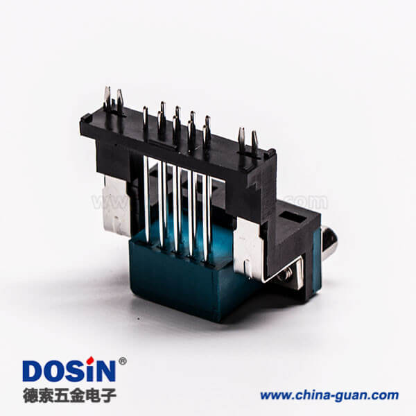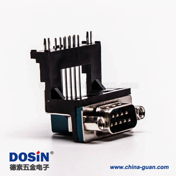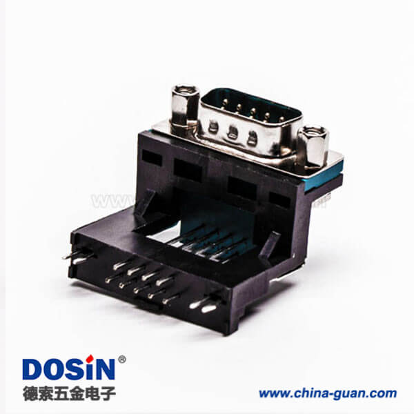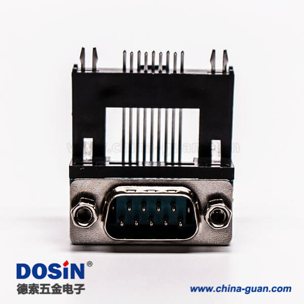 料號:DOSIN-868-0118 標簽:D-sub,高架,9 Pin,彎式,公頭,黑膠,穿孔,接PCB板