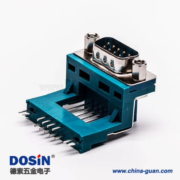 D-SUB連接器封裝公座9針彎式三腳架鉚鎖綠膠