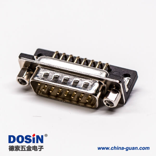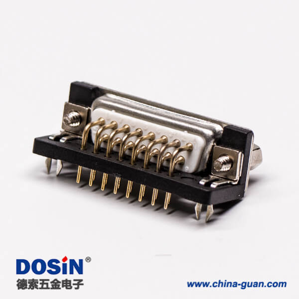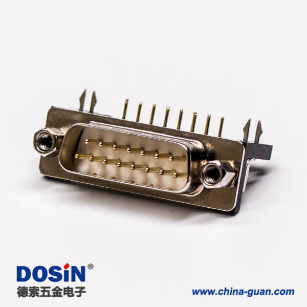 料號:DOSIN-868-0144 標簽:混合型D-sub,15針,彎式,插孔,PCB板,焊板,公座,鉚鎖,魚叉腳