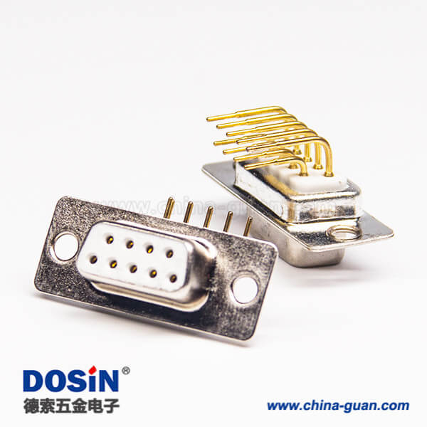 料號:DOSIN-868-0151 標簽:D-sub連接器,車針型,PCB板,插板式,鍍鎳,彎式,9Pin,白色膠芯
