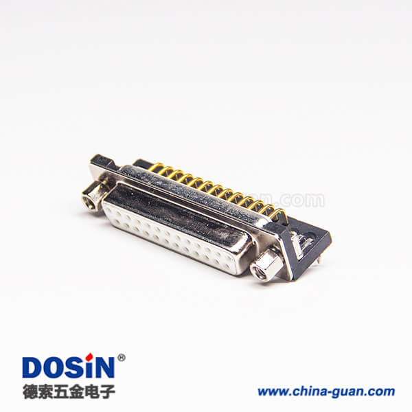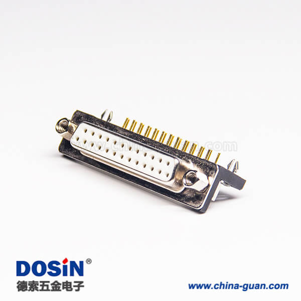 料號:DOSIN-868-0156 標簽:D-sub連接器,車針型,鍍鎳,母頭,彎式,25Pin,穿孔式,PCB板,白色膠芯,鉚鎖連接