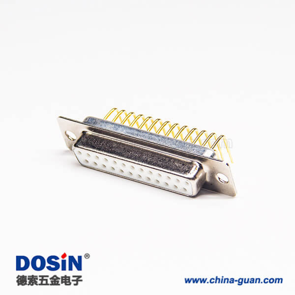 料號:DOSIN-868-0159 標簽:D-sub連接器,車針型,鍍鎳,母頭,彎式,25 Pin,穿孔式,PCB板,白色膠芯