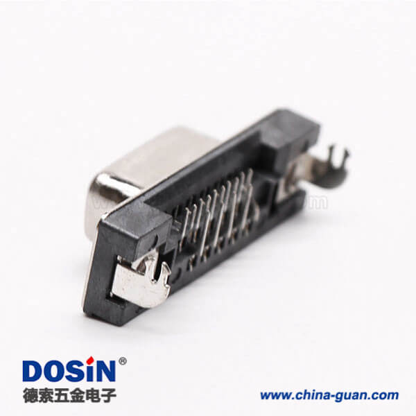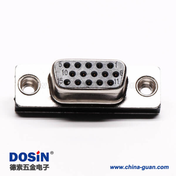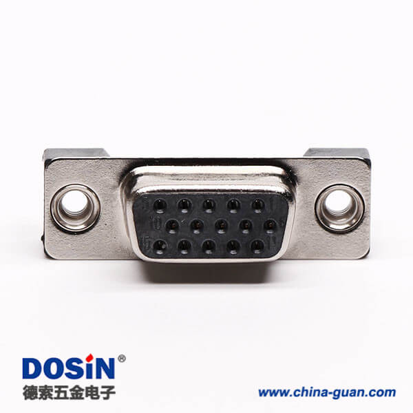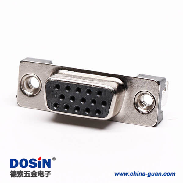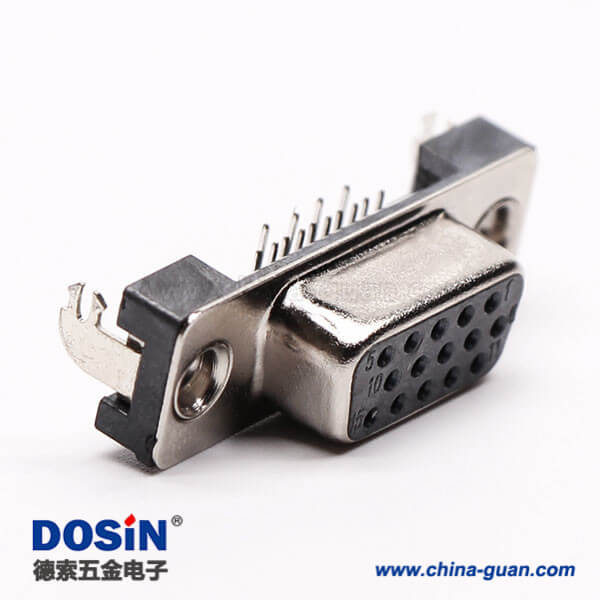 料號:DOSIN-868-0170 標簽:D-sub連接器,高密度,直角彎頭,母頭,15 Pin,鉚鎖,穿孔,插pcb板,黑色膠芯