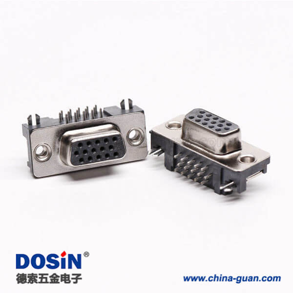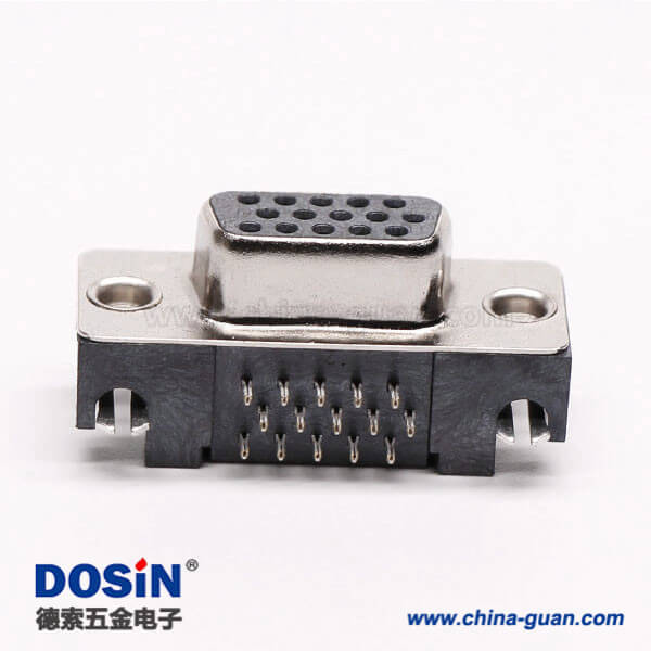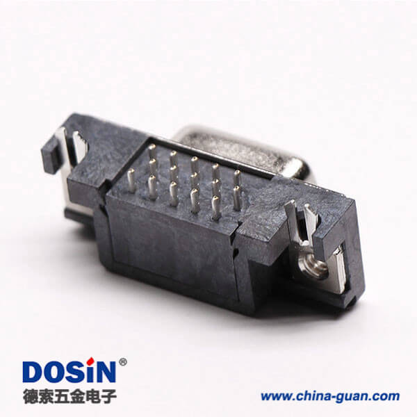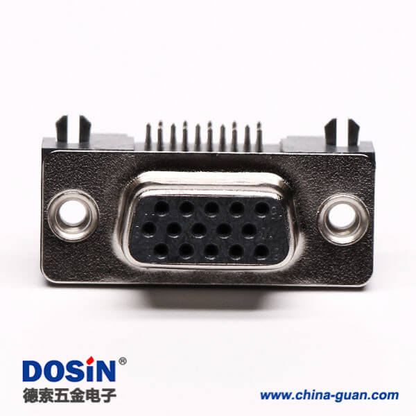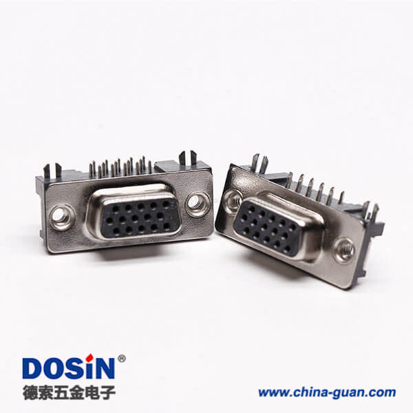 料號:DOSIN-868-0174 標簽:D-sub連接器,高密度,直角彎頭,母頭,15針,鉚鎖不帶螺絲,穿孔,插pcb板,黑色膠芯