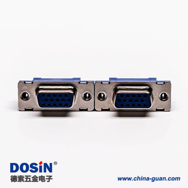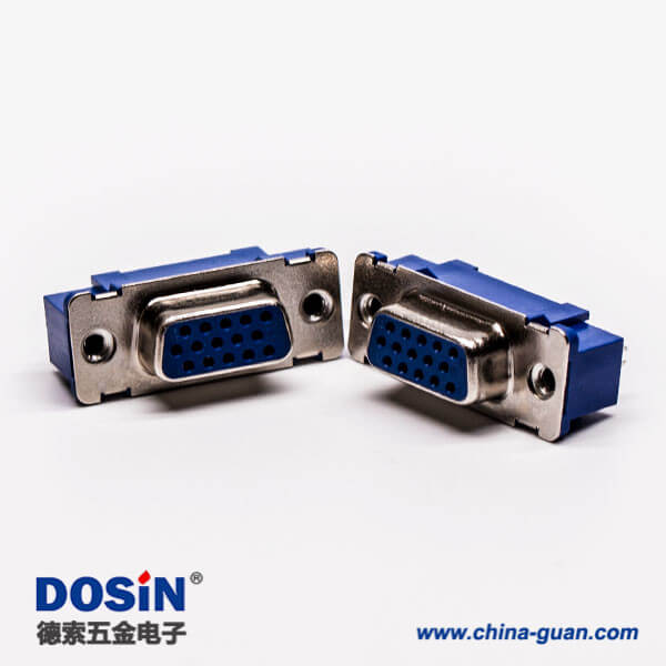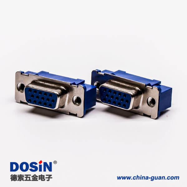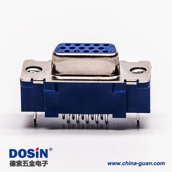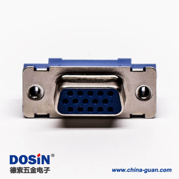 料號:DOSIN-868-0177 標簽:D-sub連接器,高密度,直插,母頭,15針,鉚鎖,穿孔,插pcb板,藍色膠芯
