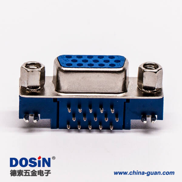 料號:DOSIN-868-0178 標簽:D-sub連接器,高密度,彎插,母頭,15針,鉚鎖,穿孔,插pcb板,藍色膠芯