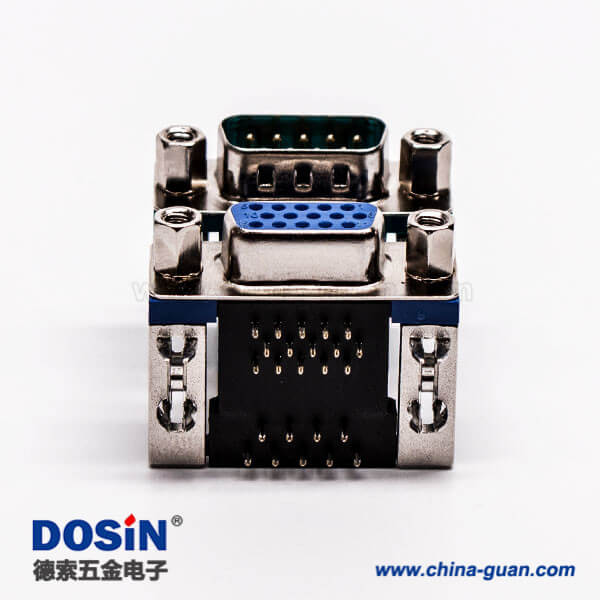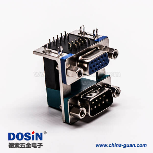 料號:DOSIN-868-0183 標簽:D-sub連接器,高密度+標準型,彎插,雙胞胎,9公針,15母針,3.08鉚鎖,穿孔,插pcb板