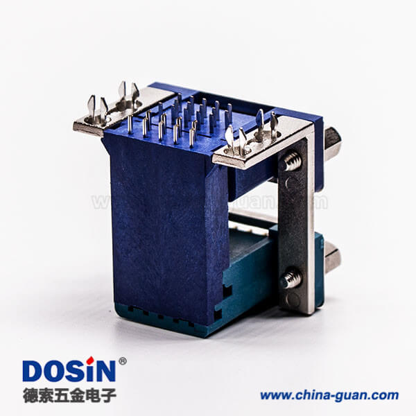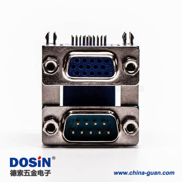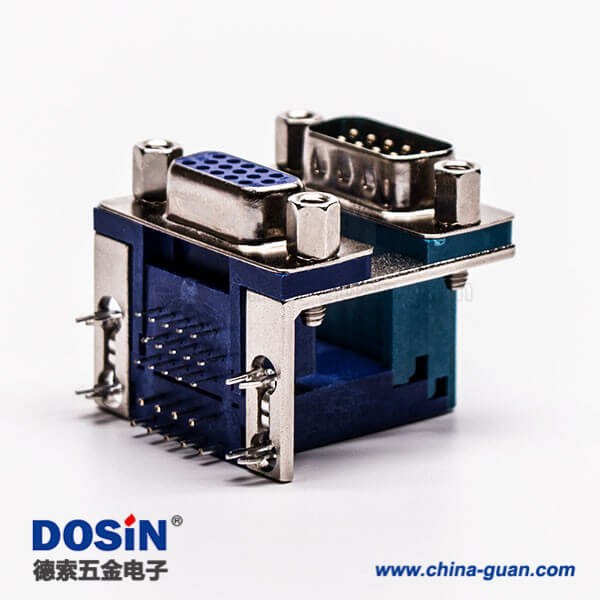 料號:DOSIN-868-0185 標簽:D-sub連接器,高密度+標準型,彎插,雙胞胎,9公針,15母針9.89鉚鎖,穿孔,插pcb板