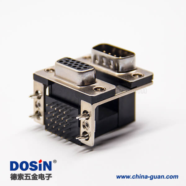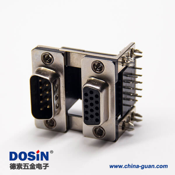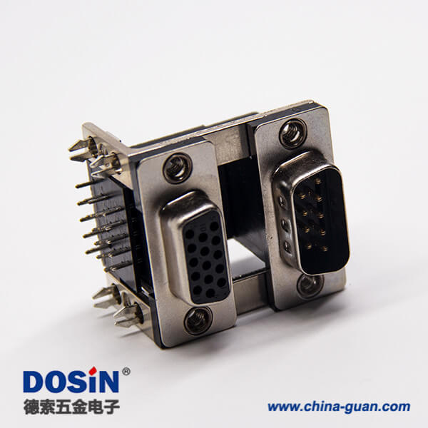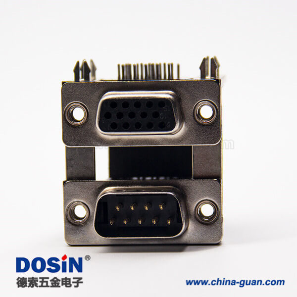 料號:DOSIN-868-0194 標簽:D-sub連接器,高密度,彎式,雙胞胎,15針 母頭,9針 公頭,魚叉腳,插板,PCB板