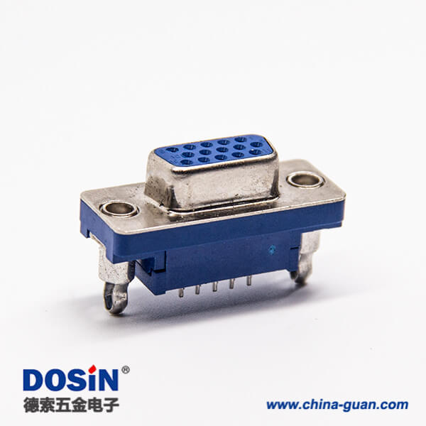 料號:DOSIN-868-0197 標簽:D-sub連接器,高密度,90度,15針,母頭,穿孔,PCB板,藍色膠芯