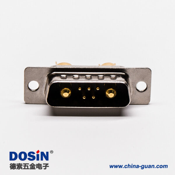 大電流 D SUB接口7W2焊線直式短體光孔鉚合公頭