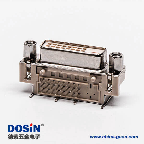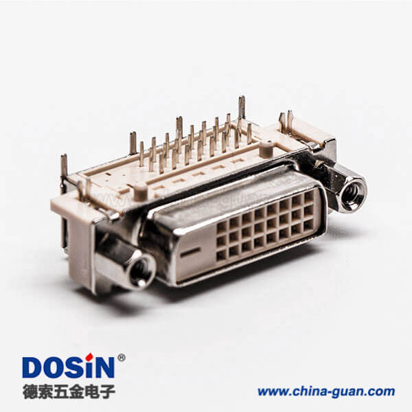 料號:DOSIN-868-0267 標簽:DVI-D 連接器,母頭,彎式,24+1,白色膠芯,穿孔,接PCB板,帶螺母,帶魚叉