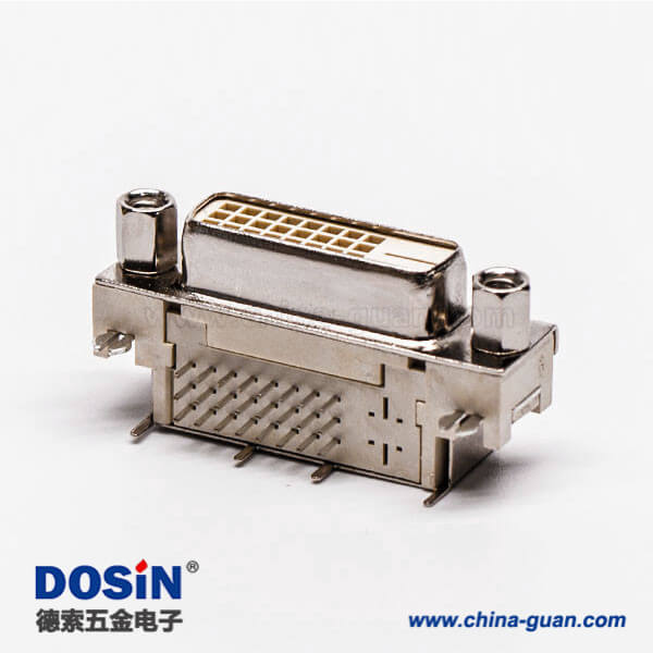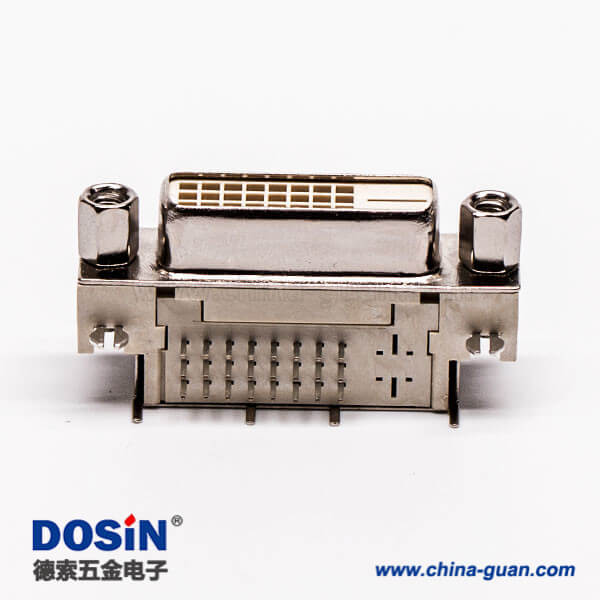 料號:DOSIN-868-0268 標簽:DVI-D 連接器,母頭,彎式,24+1,白色膠芯,帶螺母,帶魚叉,穿孔,接PCB板
