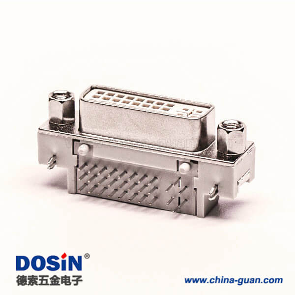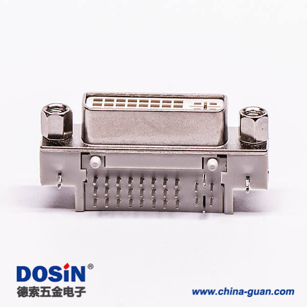 料號:DOSIN-868-0270 標簽:DVI-I 連接器,母頭,彎式,24+5,白色膠芯,帶魚叉,穿孔,接PCB板,帶螺母