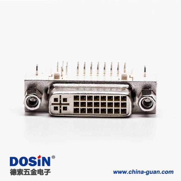 料號:DOSIN-868-0274 標簽:DVI-I 連接器,母頭,彎頭,24+5,白色膠芯,帶魚叉,穿孔,接PCB板