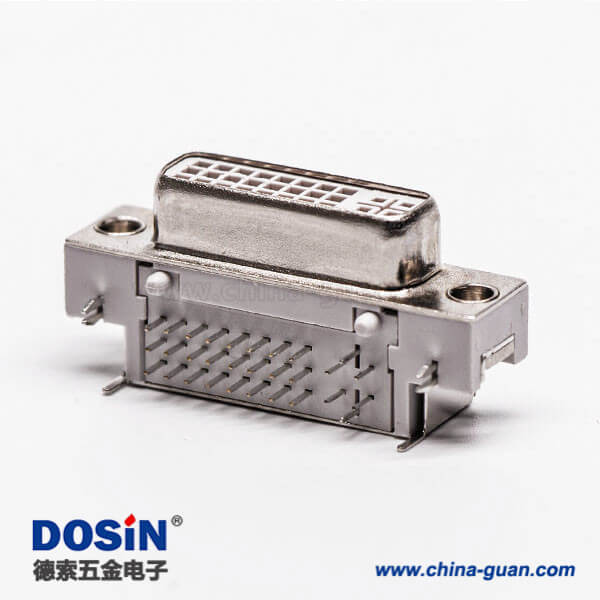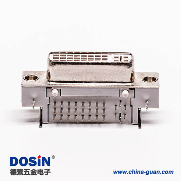 料號:DOSIN-868-0283 標簽:DVI-I 連接器,母頭,帶魚叉腳,彎式,24+5,接PCB板,帶螺母,白色膠芯