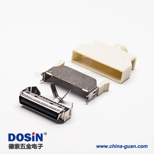 50Pin公頭連接器直式按鍵式SCSI連接器帶塑料外殼