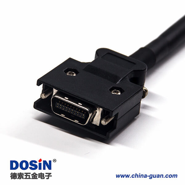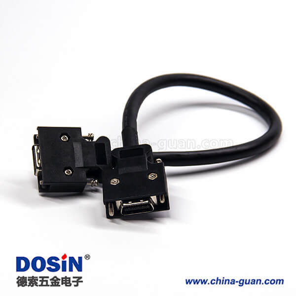 SCSI直插連接器線材20芯HPCN型黑色塑膠殼公轉公螺絲鎖接雙邊線1米