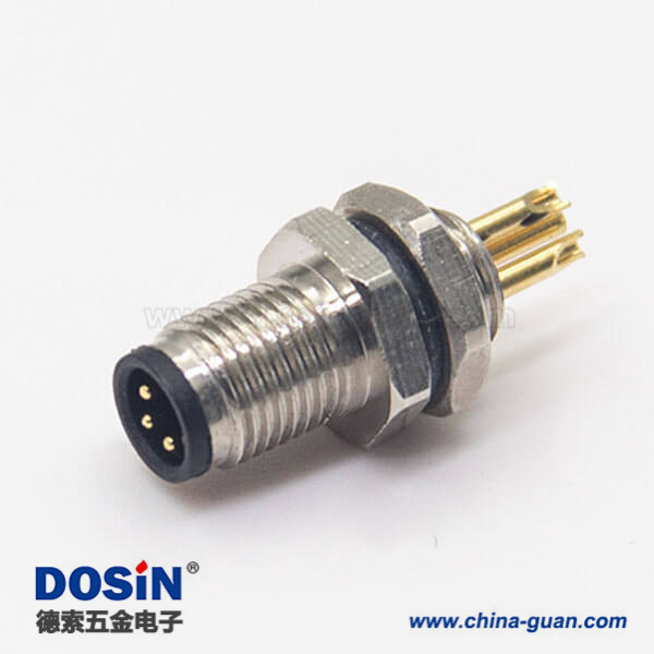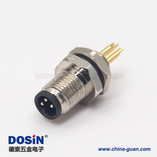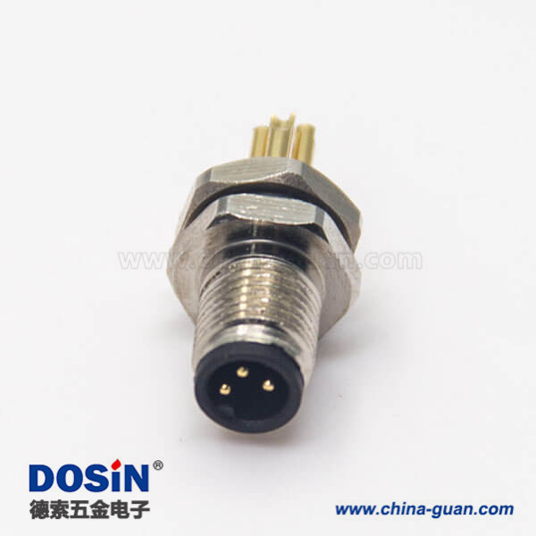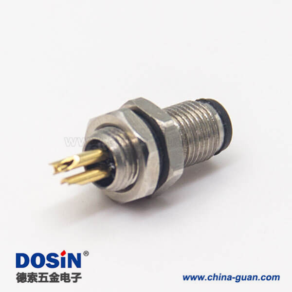 螺紋接頭M5航空插座3pin焊線式防水板前安裝連接器
