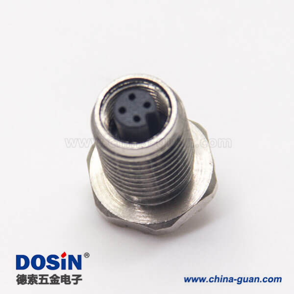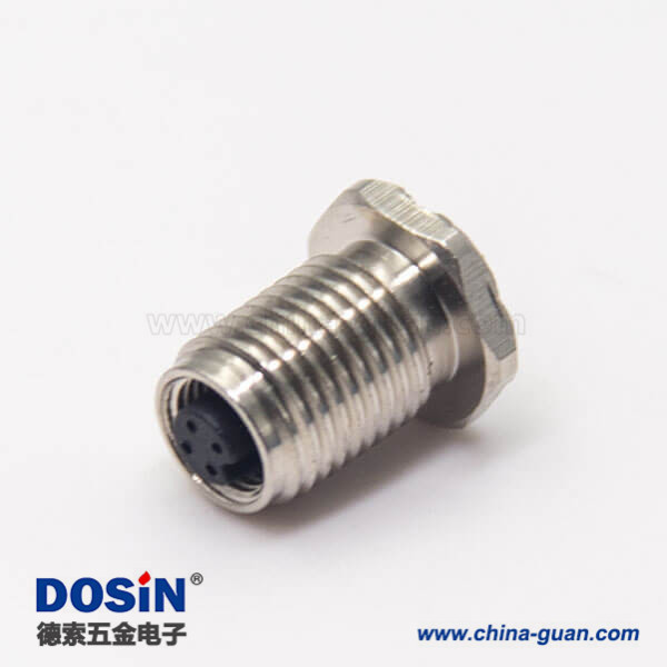 料號:DOSIN-868-0503 標簽:M5, 4芯, 板端插座, 母頭, 直式,焊接, 前鎖穿墻,接面板 / 線材