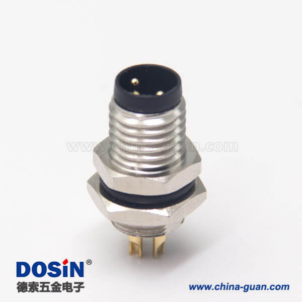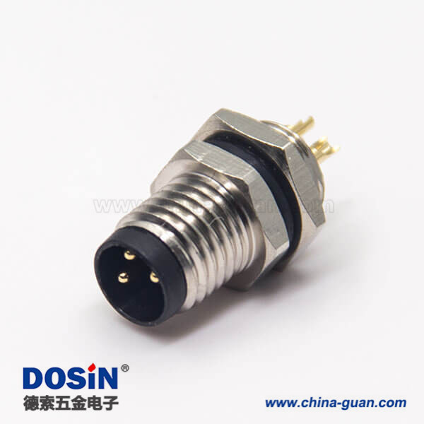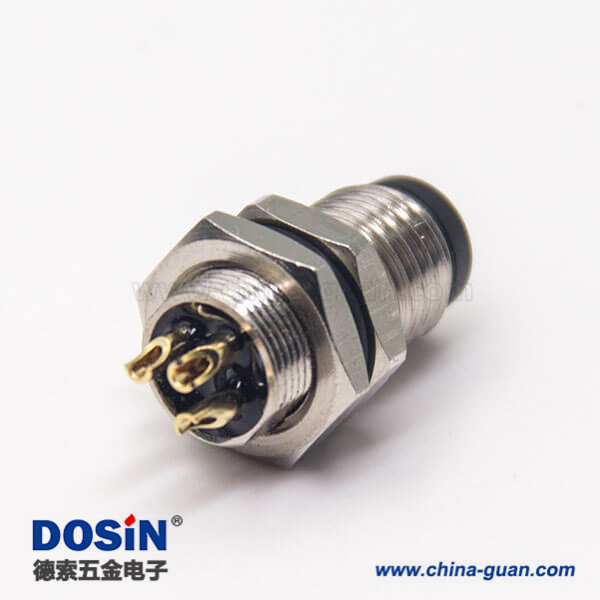 料號:DOSIN-868-0510 標簽:M8,3芯,板端插座,公頭,直式,前鎖板,面板安裝,焊線