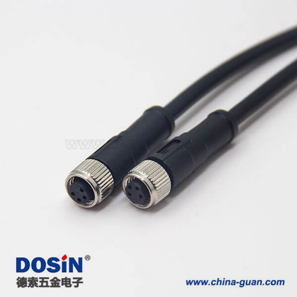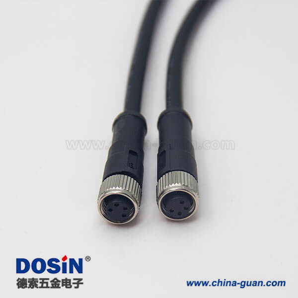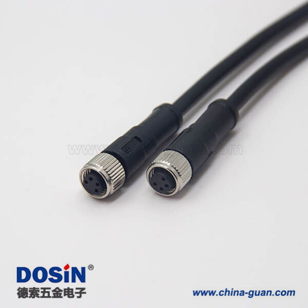 m8 4芯直式母頭注塑線雙邊組裝電纜