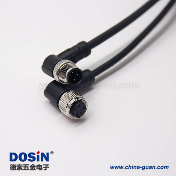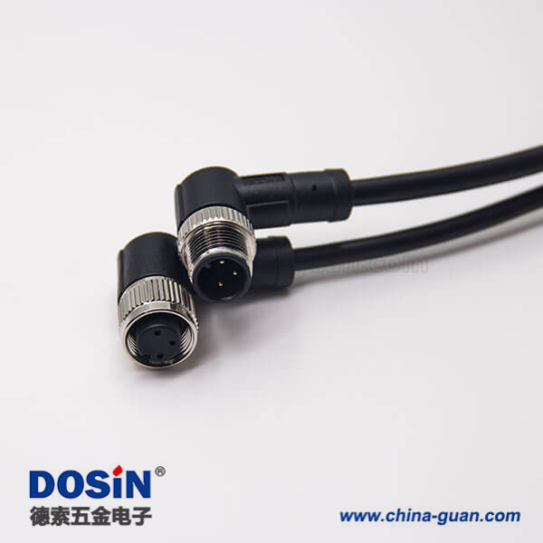 m12電纜彎母頭3芯不帶屏蔽工業防水連接器