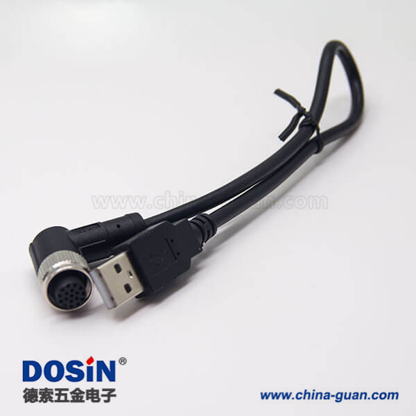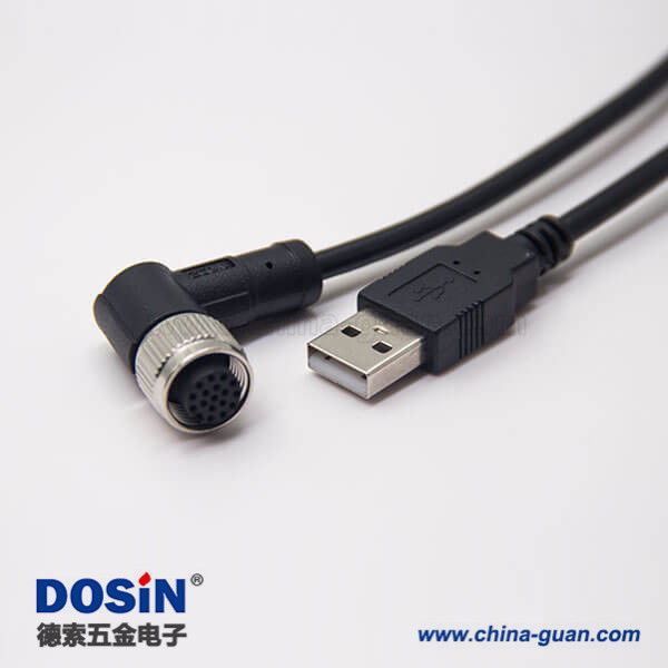 料號:DOSIN-868-0562 標簽:M12,A 編碼,線束,17芯,母轉公,彎式,焊線,雙邊,不帶屏蔽