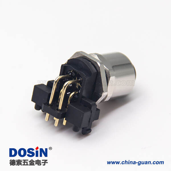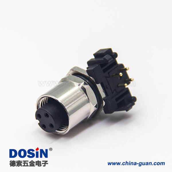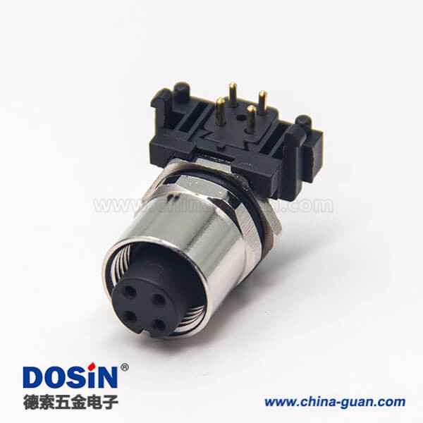 料號:DOSIN-868-0585 標簽:M12,板端插座,A編碼,4芯,彎式,母頭,穿墻,插PCB板安裝