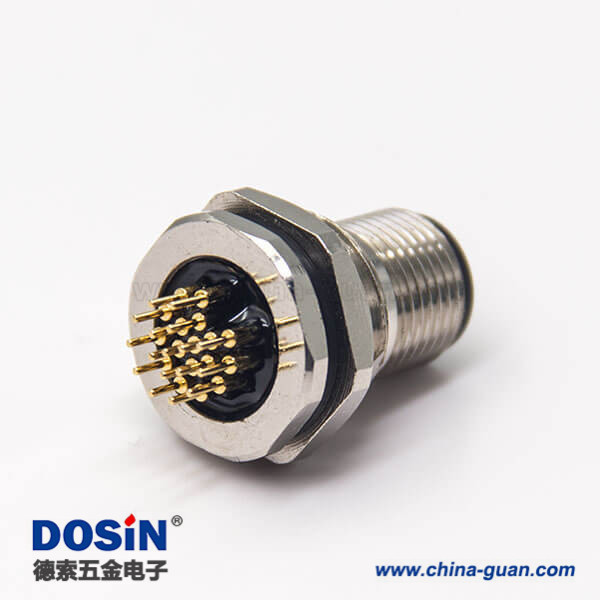 料號:DOSIN-868-0599 標簽:M12板端插座,A編碼,17芯,直式,公頭,插板,前鎖板,面板安裝