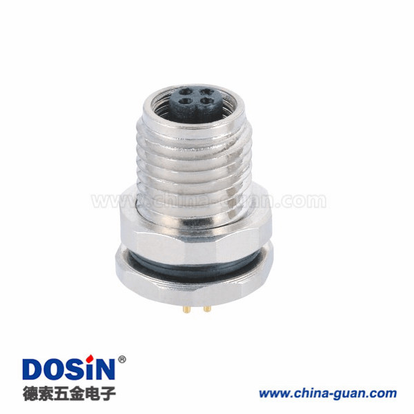 料號:DOSIN-868-0605 標簽:M5, 4芯, 板端插座, 母, 直頭, 接PCB板, 前鎖