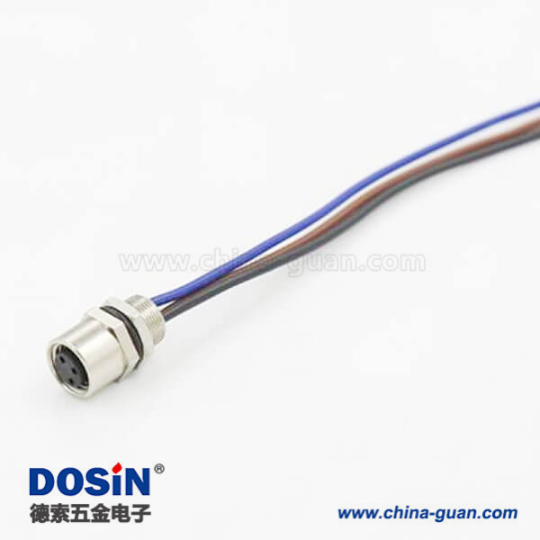 料號:DOSIN-868-0609 標簽:M5, 3芯, 板端插座, 母, 直頭, 線材, 焊接式, 后鎖板
