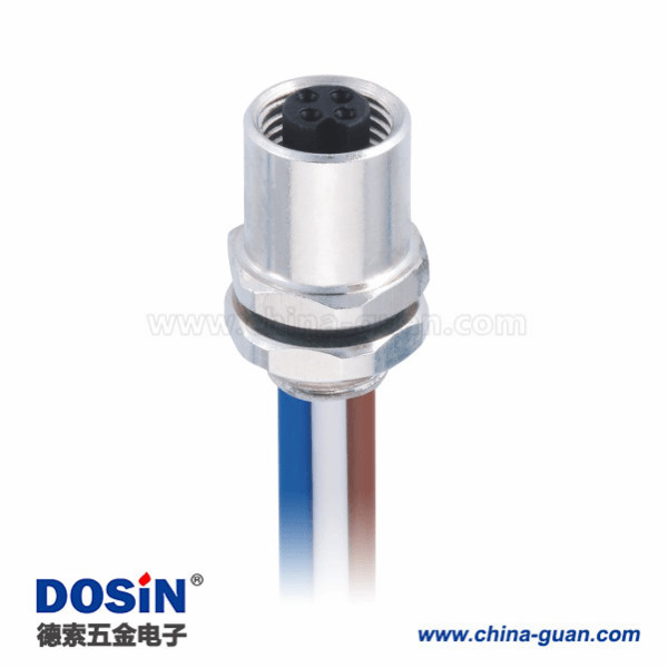 料號:DOSIN-868-0610 標簽:M5, 4芯, 板端插座, 母, 直頭, 線材, 焊接式, 后鎖板