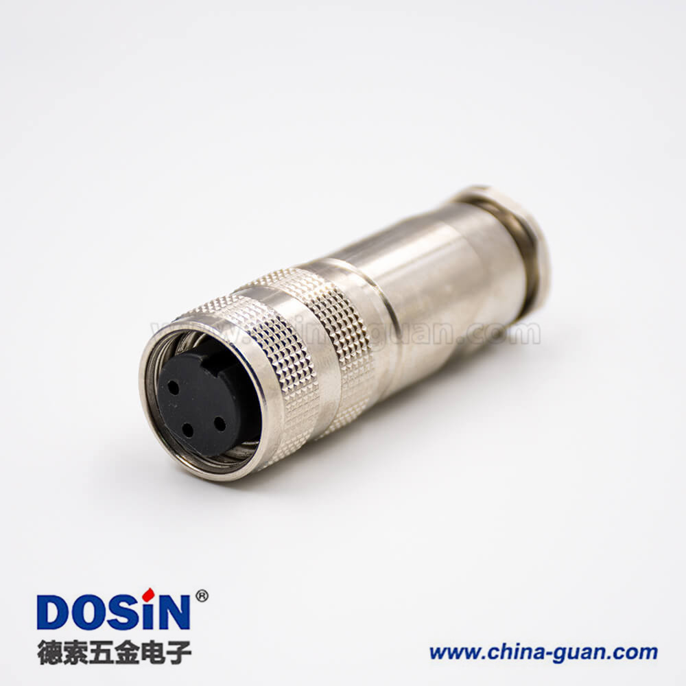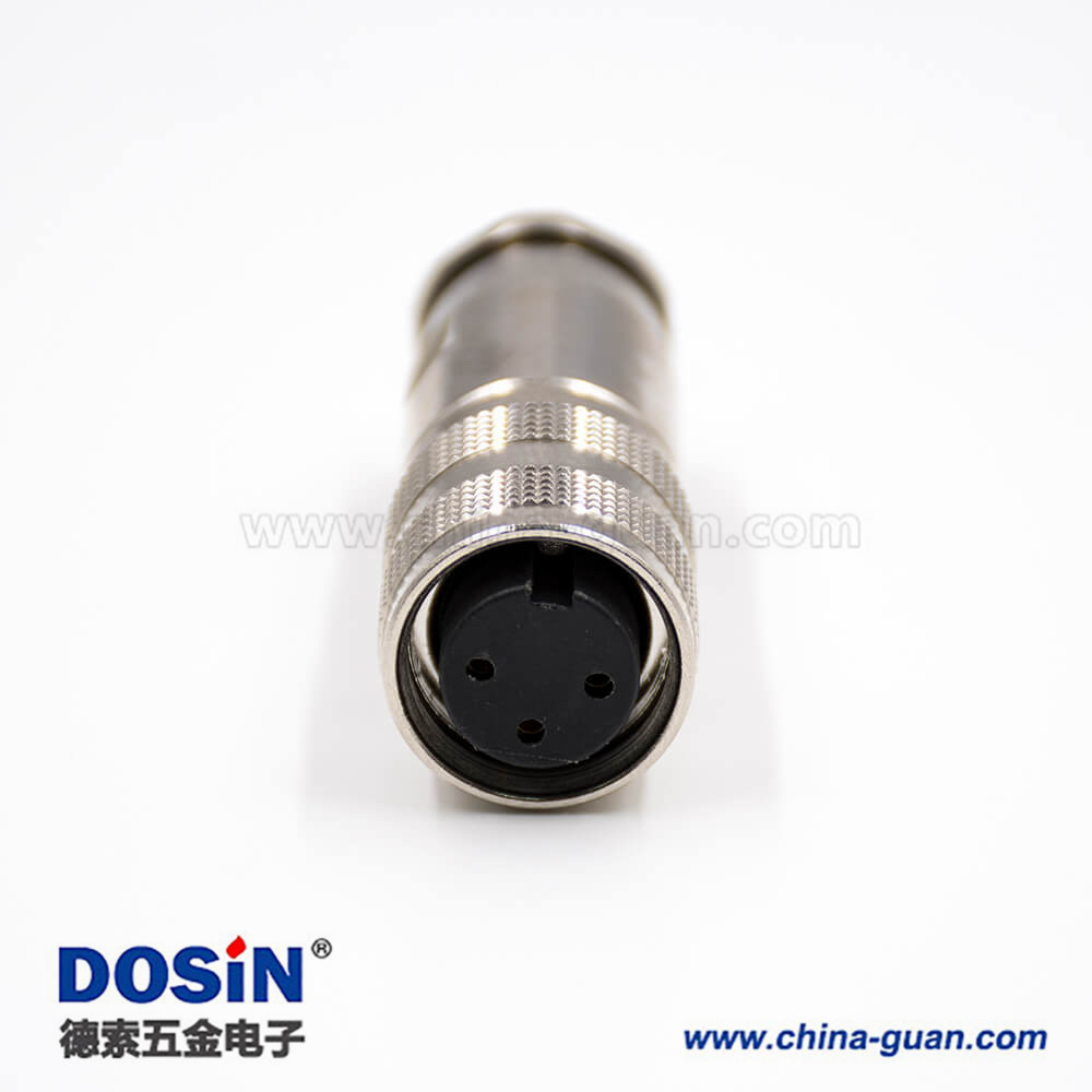 M16三芯防水連接器母頭A扣直式全金屬接線組裝接頭帶屏蔽