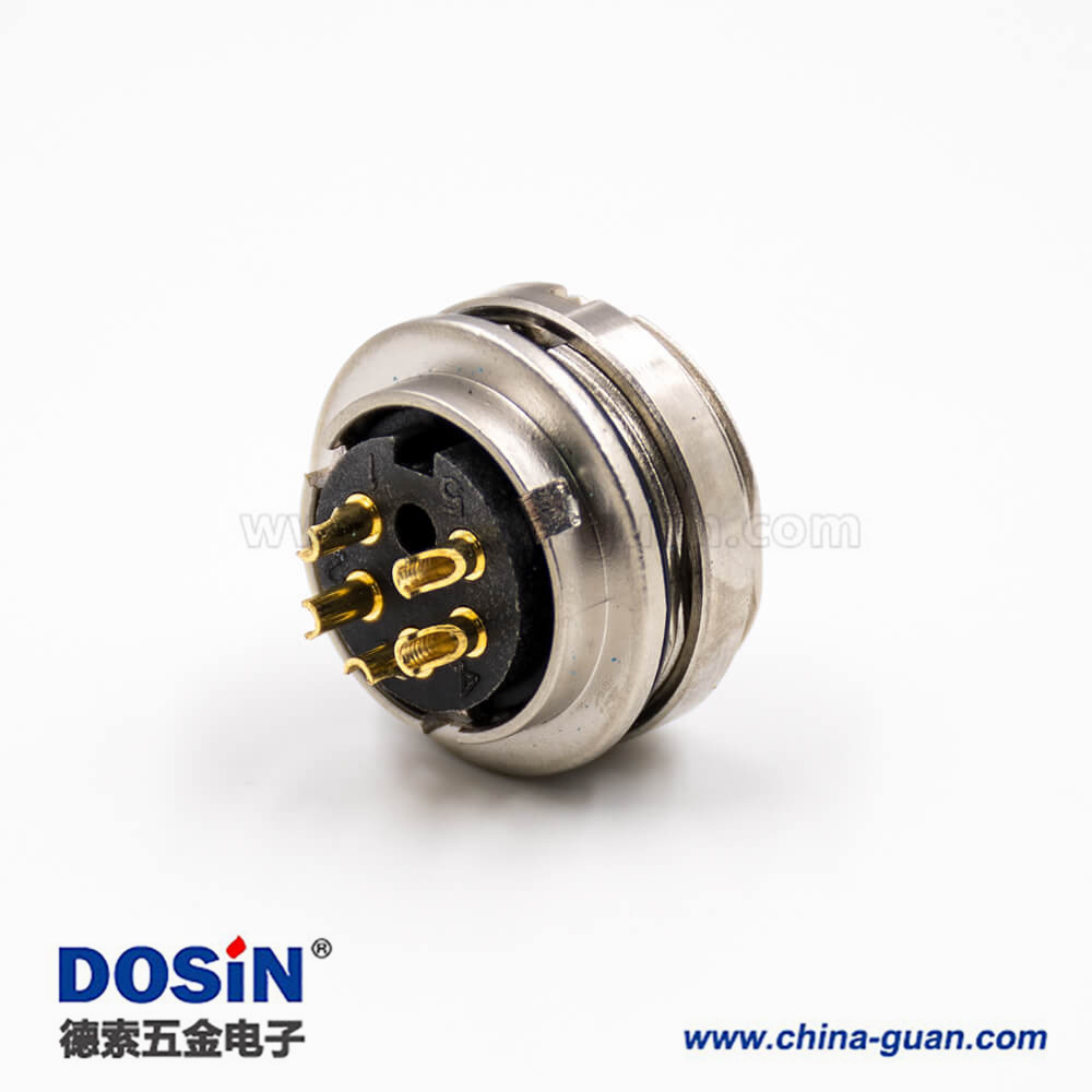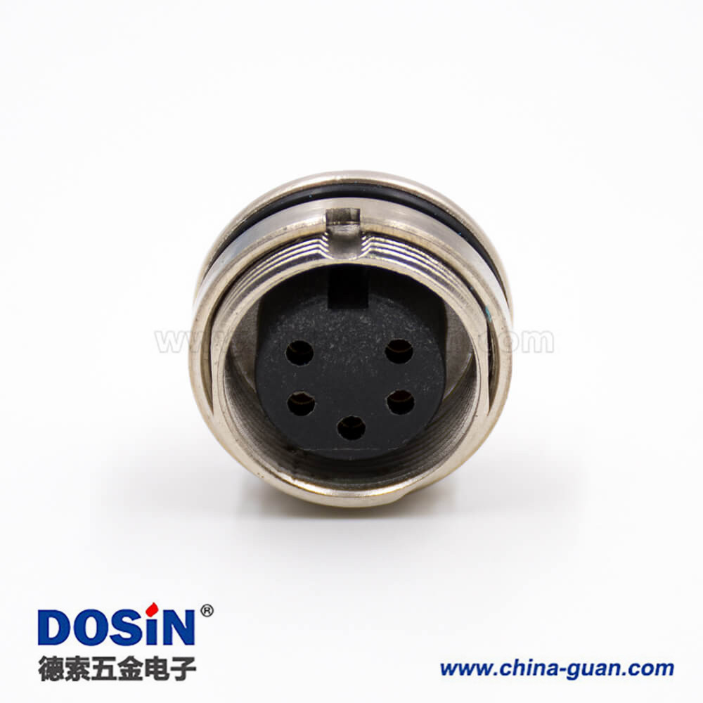 M16連接器5芯母頭A扣車針直式穿墻焊杯接線板端插座