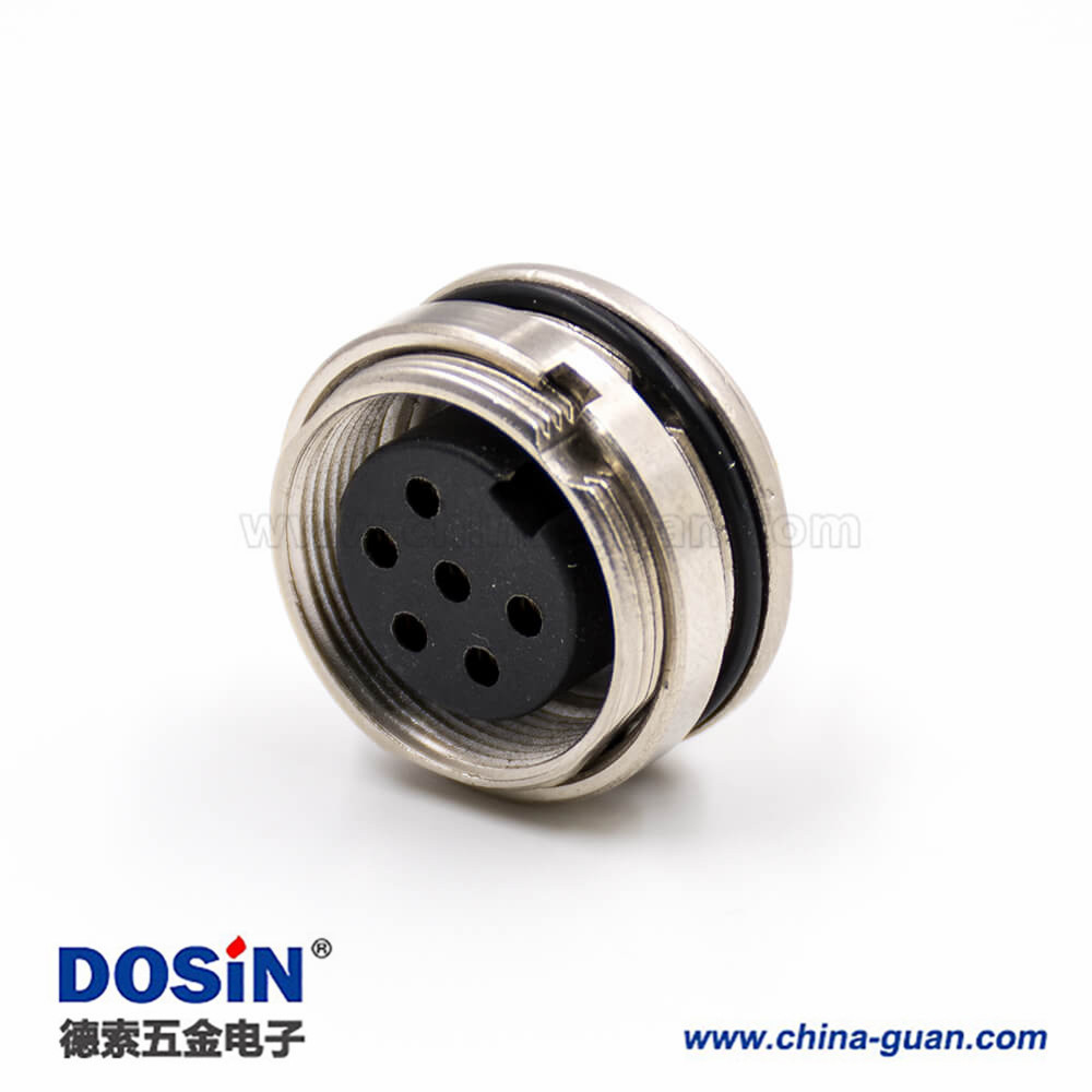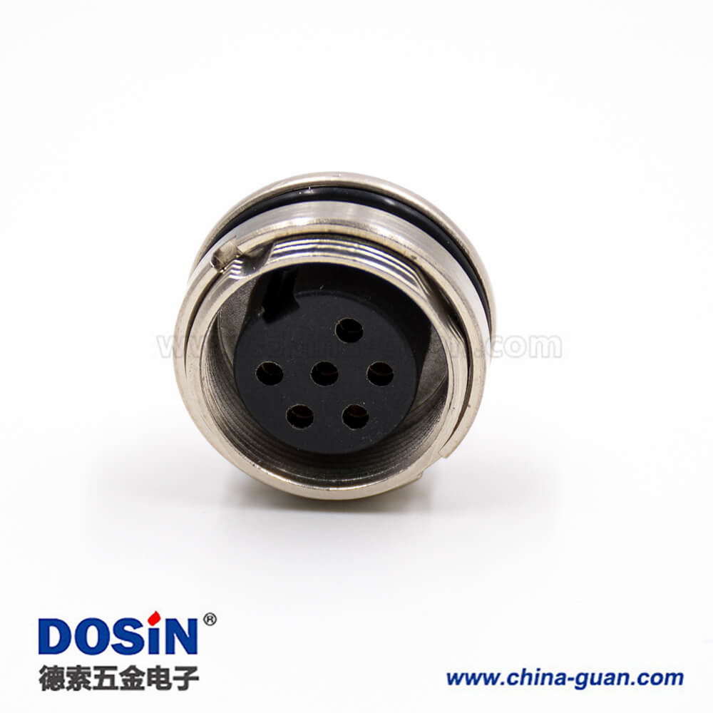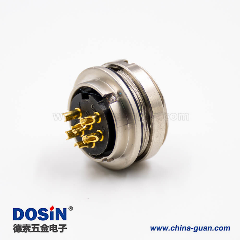 6芯插座M16母頭6芯A扣直式前鎖穿墻板端插座焊杯接線連接器
