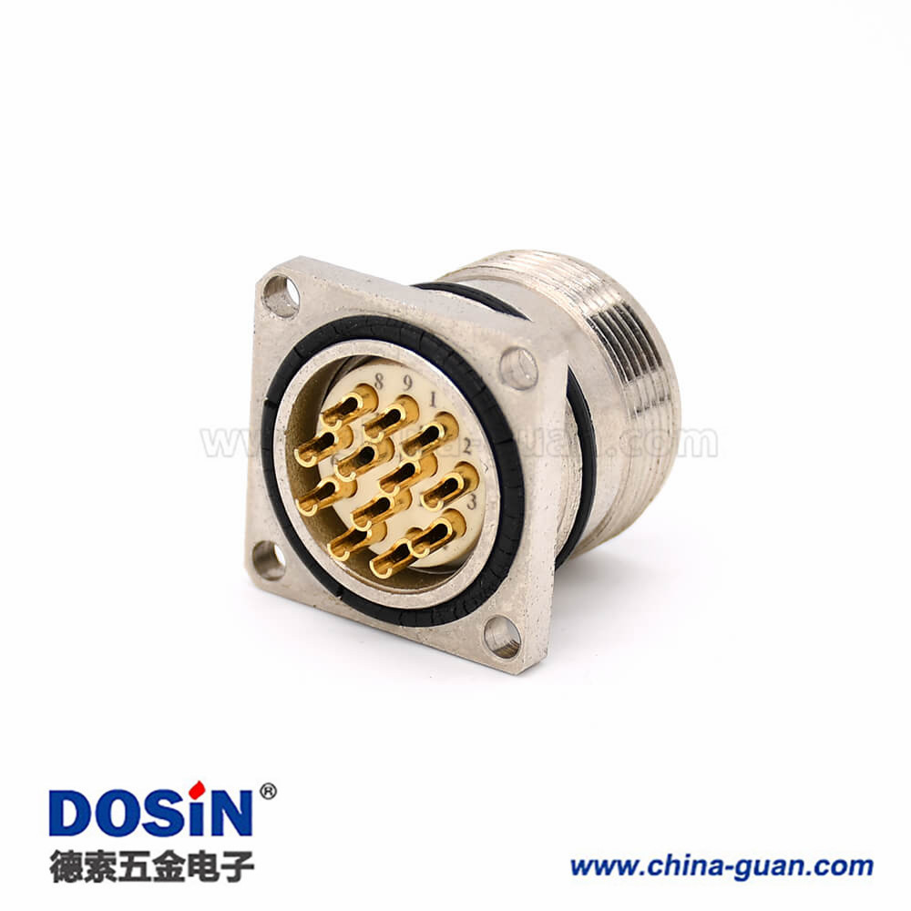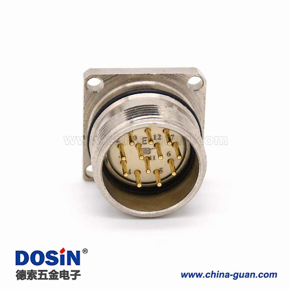 料號:?DOSIN-868-0714 標簽:M623,12芯,公頭,直式,面板安裝,焊接式,四孔法蘭