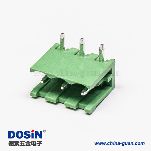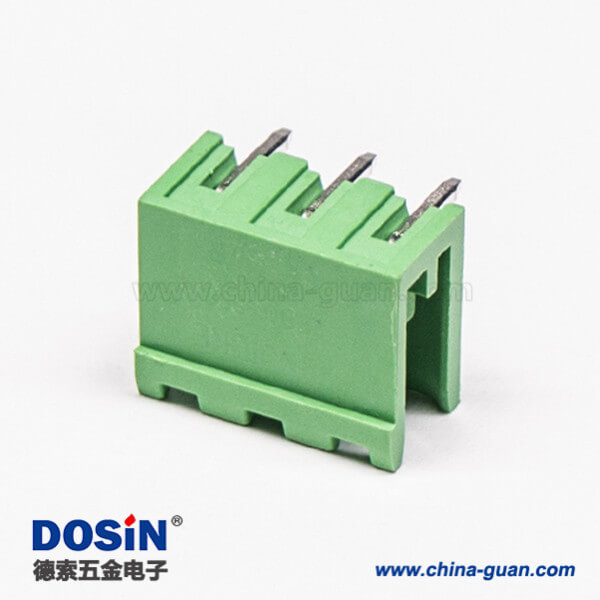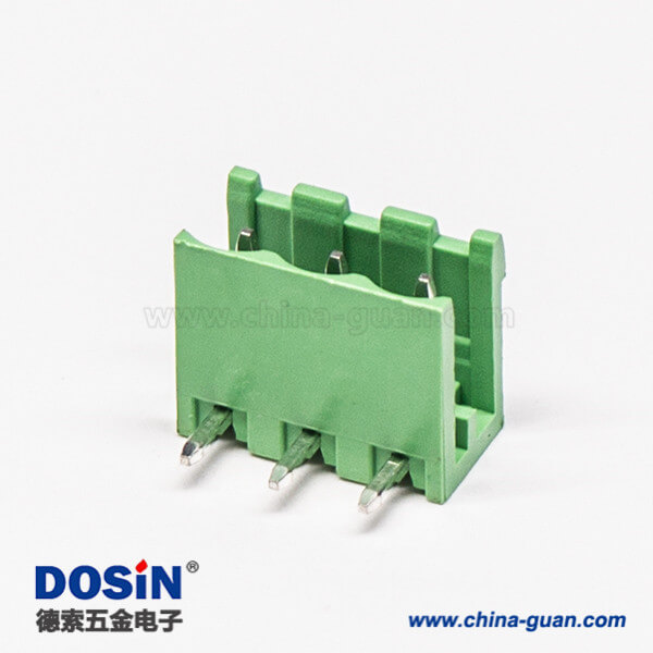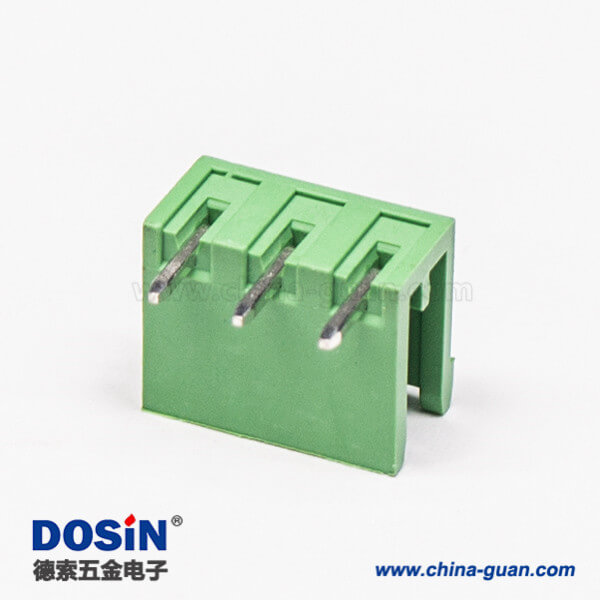 插拔式接線端子彎針3芯穿孔式PCB板安裝綠色端子接線