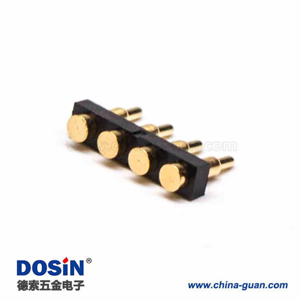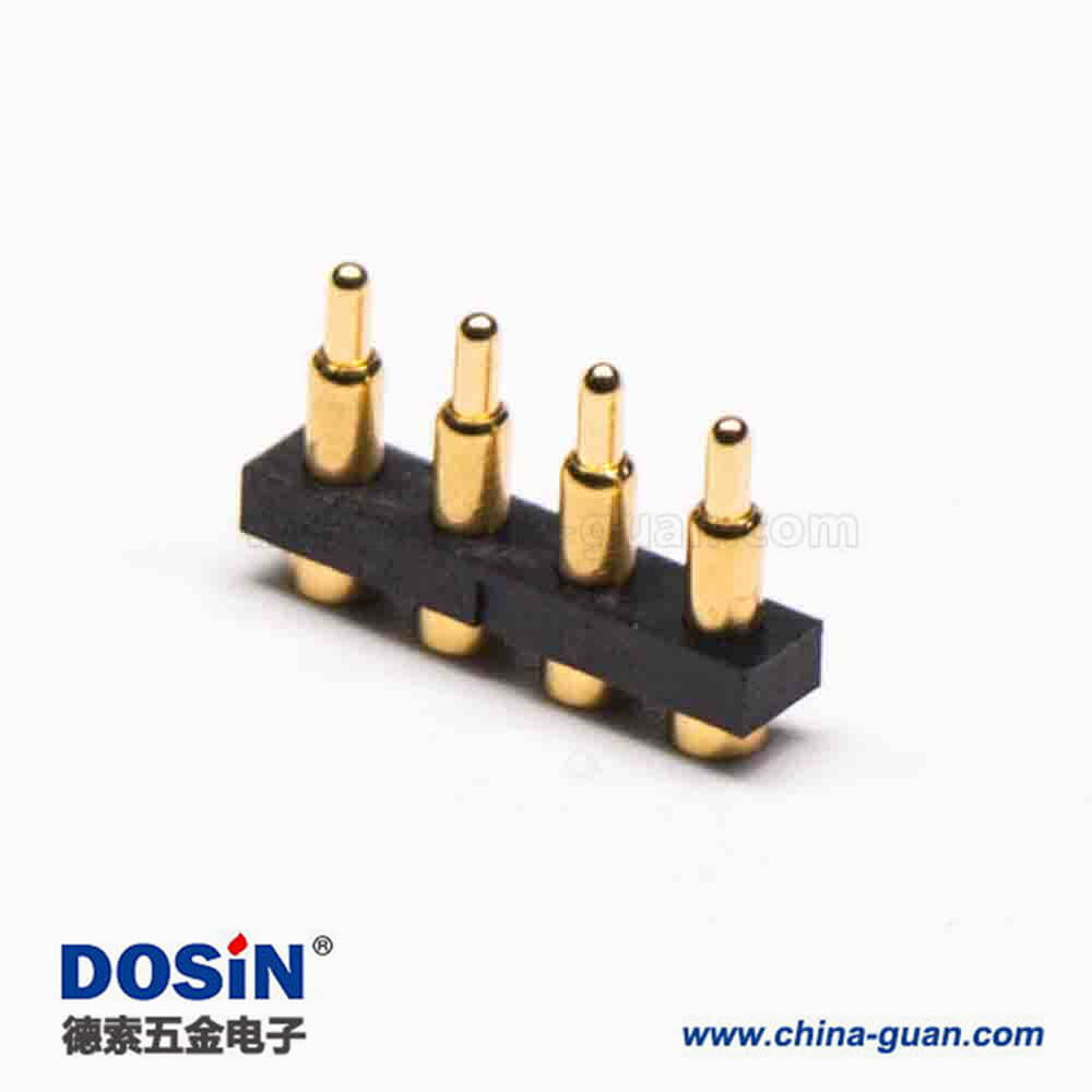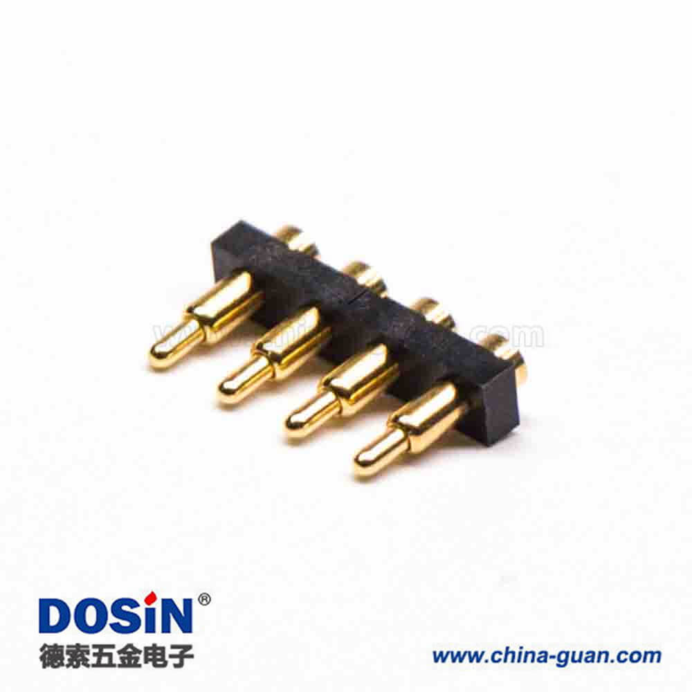 Pogo Pin彈簧針4針單排黃銅鍍金側放式2.54MM間距單針普通頭
