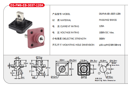 法蘭120A穿墻式接線柱內(nèi)螺紋M6銅牌M6黑色