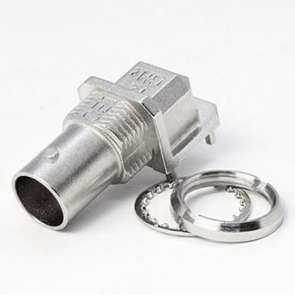 標簽:BNC連接器, 母頭, 彎式, 穿墻插板式, 75歐姆, 鍍鎳